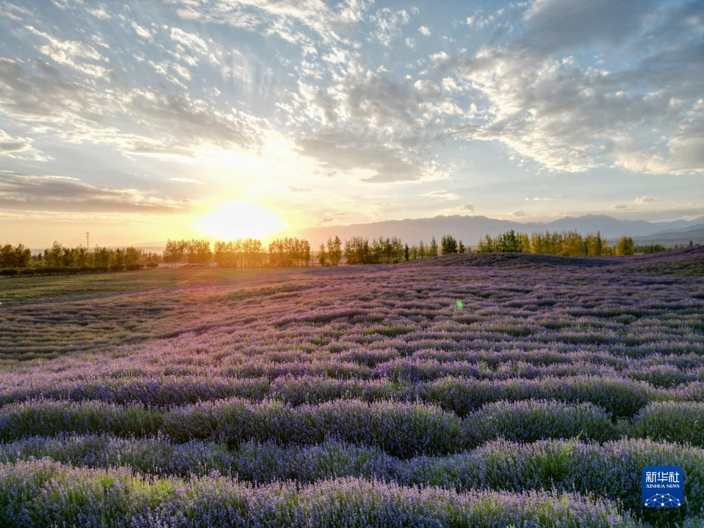 夏日時(shí)節,新疆伊犁哈薩克自治州霍城縣蘆草溝鎮四宮村的萬(wàn)畝薰衣草花海漸次開(kāi)放,吸引眾多游客前來(lái)觀(guān)賞。