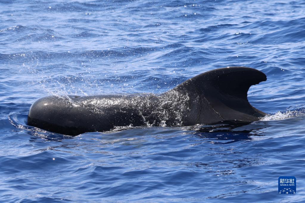 這是6月27日在南海某海域拍攝的短肢領(lǐng)航鯨。