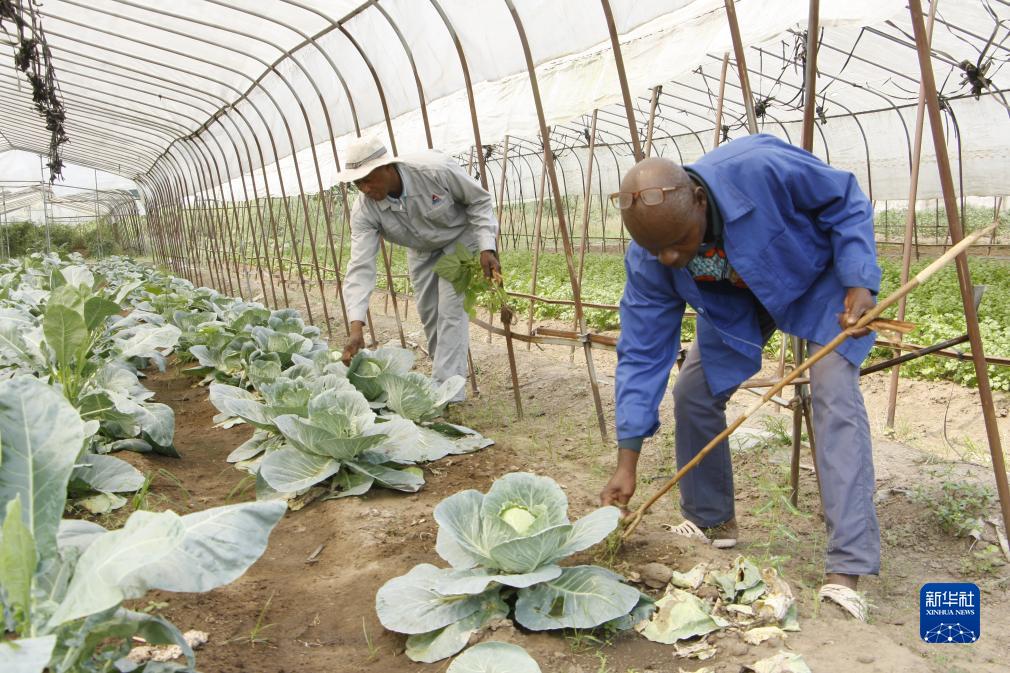 7月12日,在剛果(布)首都布拉柴維爾郊區的中國農業(yè)技術(shù)示范中心,工作人員在種植園作業(yè)。