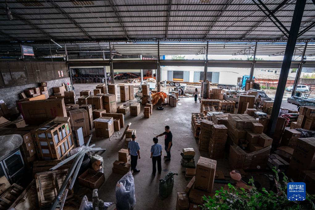7月12日,尹銘燕在芒市一處物流點(diǎn)對快遞包裹進(jìn)行查緝。