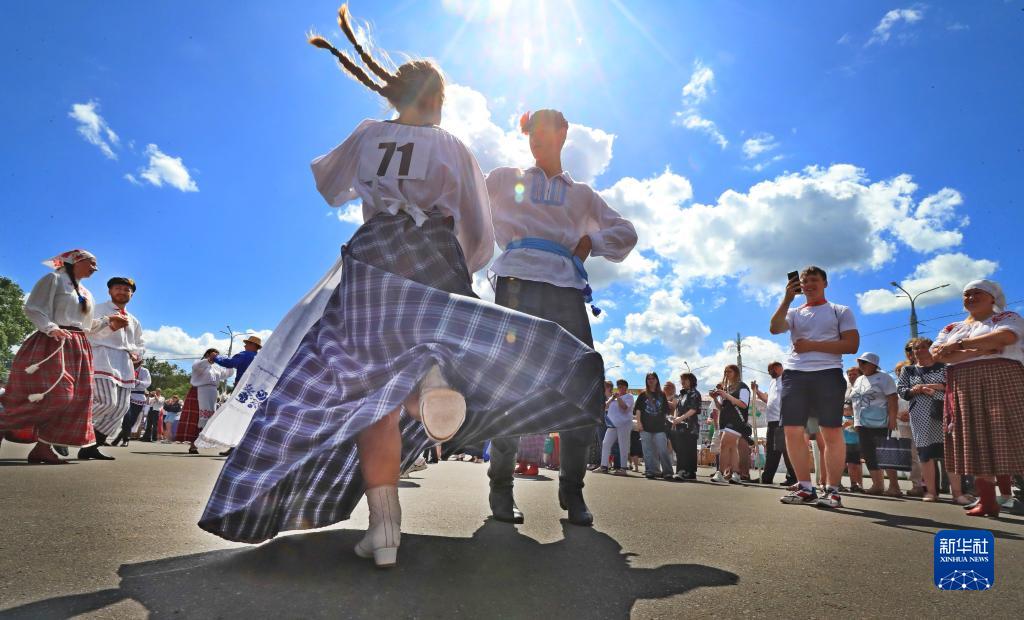 當日,一場(chǎng)民族舞蹈比賽在白俄羅斯維捷布斯克舉行。新華社發(fā)(任科夫攝)