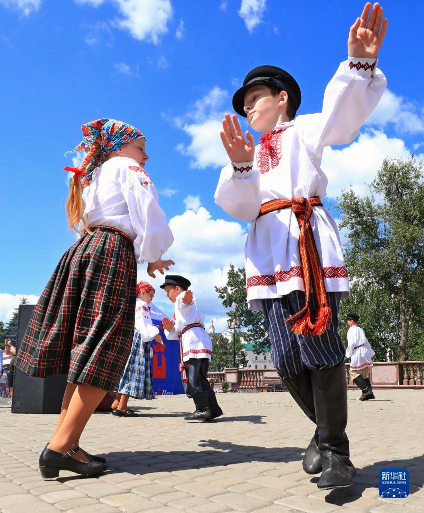 當日,一場(chǎng)民族舞蹈比賽在白俄羅斯維捷布斯克舉行。新華社發(fā)(任科夫攝)