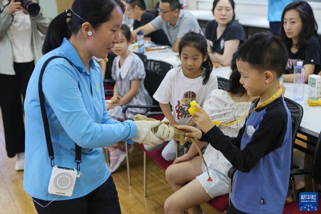 7月15日晚,小朋友們在上海動(dòng)物園科教館與小動(dòng)物親密接觸。