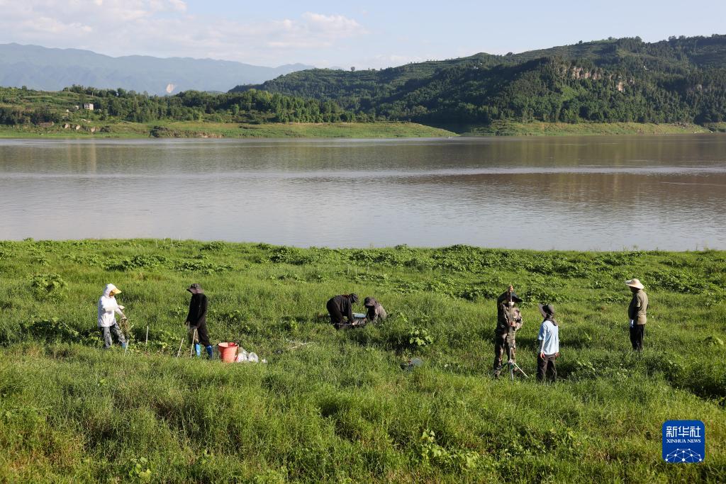 在中國科學(xué)院三峽庫區水土保持與環(huán)境研究站,中國科學(xué)院成都山地所科研人員在庫區消落帶上開(kāi)展相關(guān)監測(7月5日攝)。