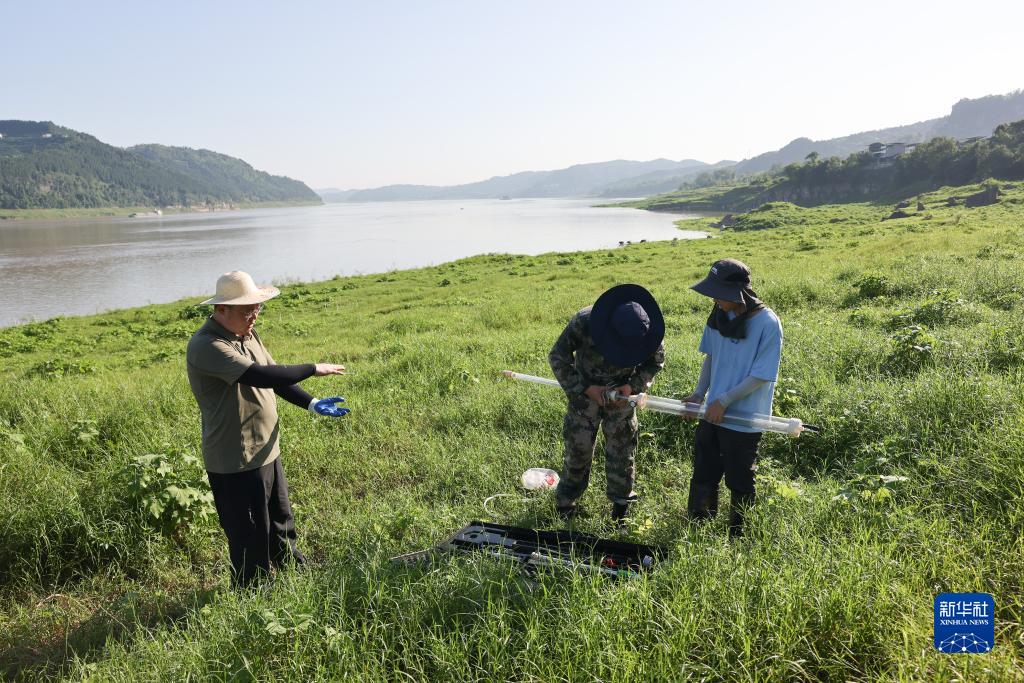 在中國科學(xué)院三峽庫區水土保持與環(huán)境研究站,中國科學(xué)院成都山地所科研人員在庫區消落帶上開(kāi)展相關(guān)監測(7月5日攝)。
