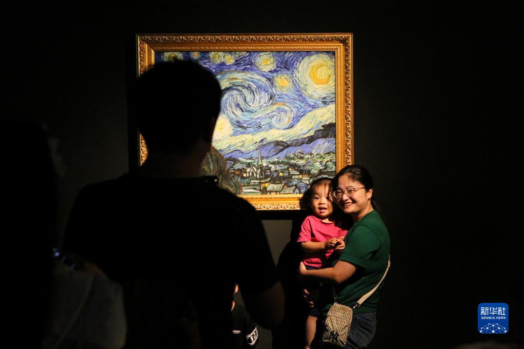 7月16日晚,參觀(guān)者在“梵高再現”光影展上拍照留念。
