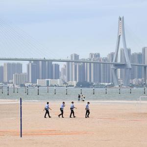 7月17日,臺風(fēng)來(lái)臨前夕,在廣東湛江奧林匹克體育中心附近,車(chē)輛游人稀少(無(wú)人機照片)。