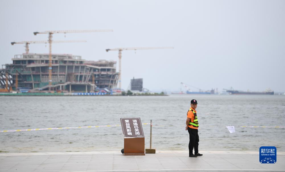 7月17日,在廣東湛江金沙灣海濱浴場(chǎng),保安在警戒線(xiàn)執勤。