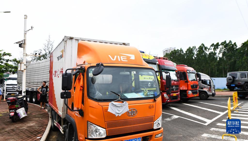 7月17日,不少貨車(chē)停放在金沙灣二路等地,等待臺風(fēng)過(guò)后通過(guò)瓊州海峽。