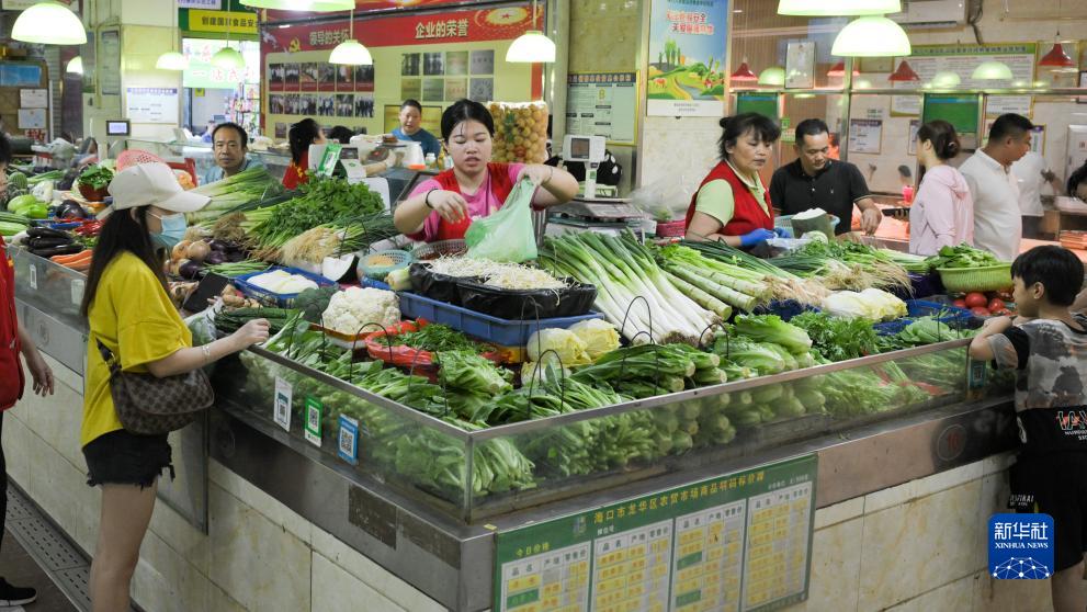 7月17日,在??谑薪鹳Q文華農貿市場(chǎng),市民有序選購蔬菜。