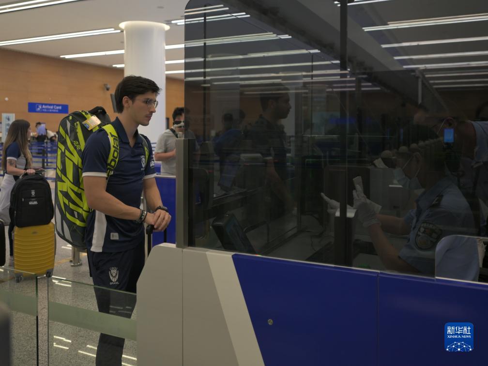 7月17日,在成都天府國際機場(chǎng),巴西代表團成員等待過(guò)關(guān)。