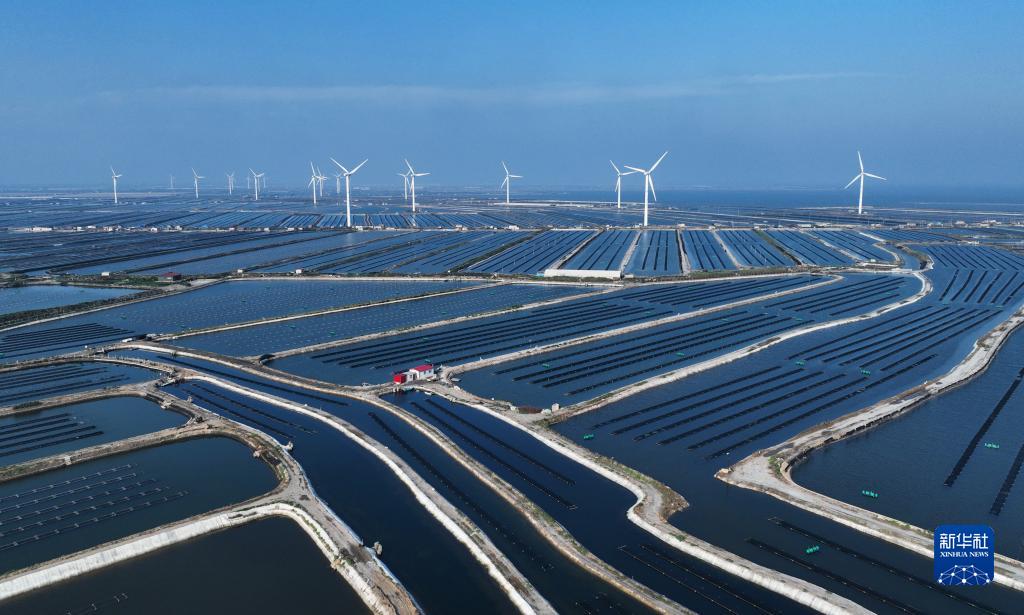 7月17日拍攝的河北省樂(lè )亭縣姜各莊鎮境內的海產(chǎn)品養殖基地景色(無(wú)人機照片)。