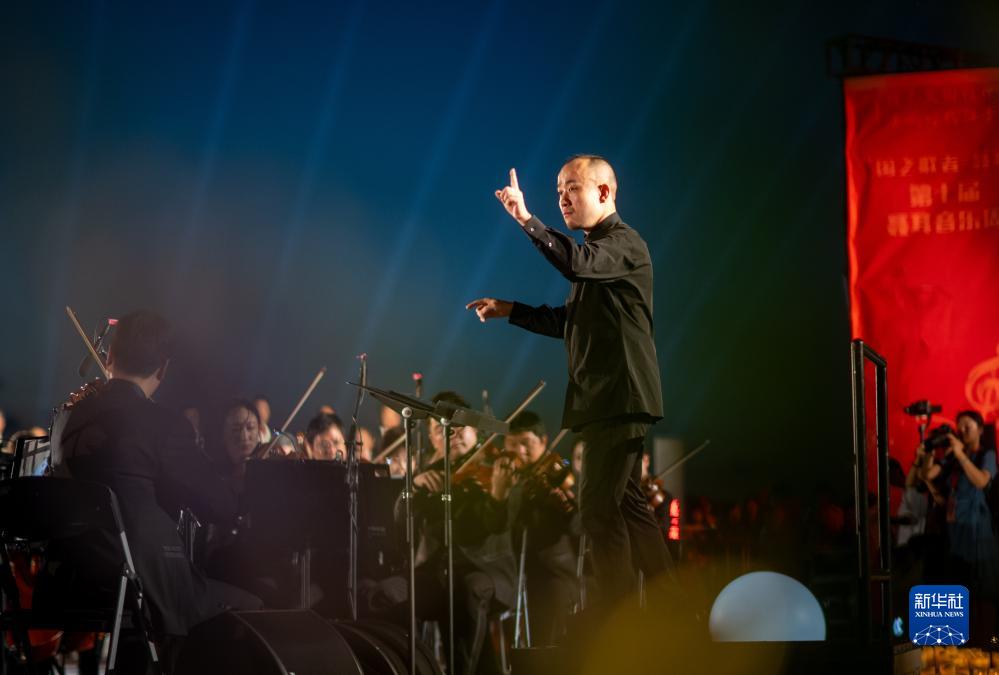 來(lái)自昆明聶耳交響樂(lè )團及昆明市民族歌舞劇院民樂(lè )團的演奏家們在昆明市滇池畔共同演奏包括《義勇軍進(jìn)行曲》《賣(mài)報歌》在內的聶耳代表作(7月17日攝)。