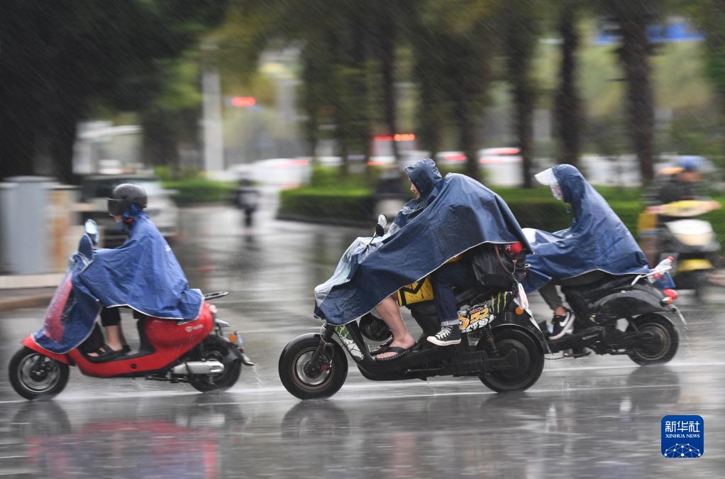 7月18日,在廣西南寧市濱湖路,市民冒著(zhù)臺風(fēng)帶來(lái)的風(fēng)雨出行。
