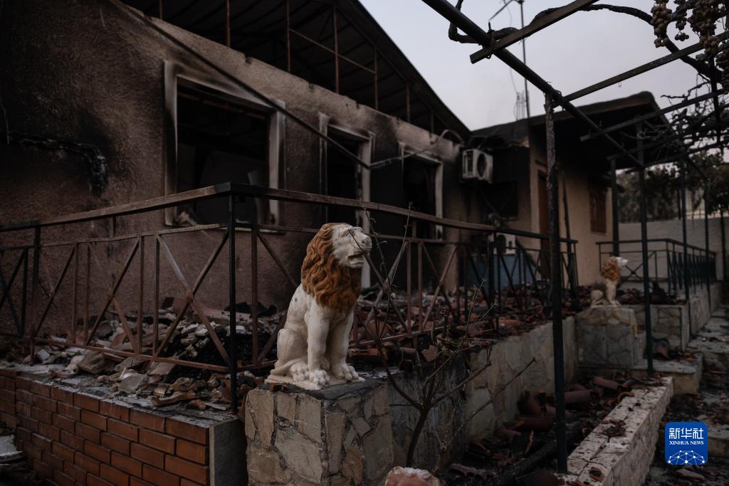 這是7月17日在希臘雅典郊外盧特拉基附近拍攝的被燒毀的房屋。