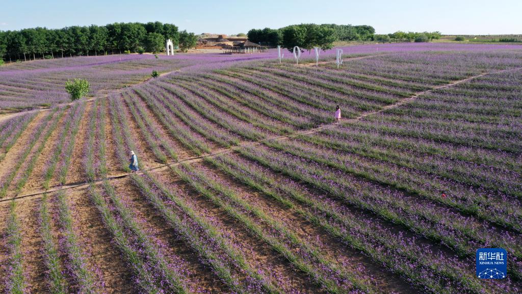 寧夏薰衣草莊園盛開(kāi)的馬鞭草(無(wú)人機照片,7月15日攝)。