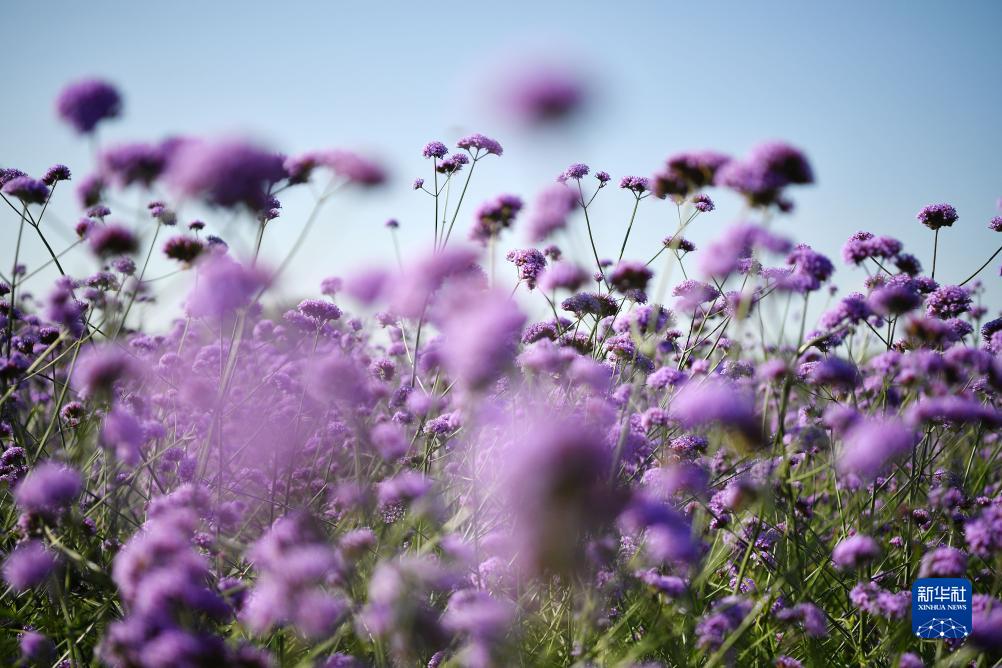 寧夏薰衣草莊園盛開(kāi)的馬鞭草(7月15日攝)。