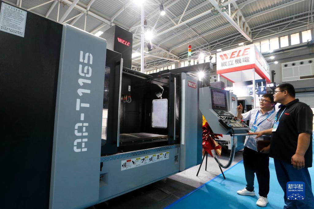 7月18日,參展商在2023青島國際機床展覽會(huì )上調試銑削設備。
