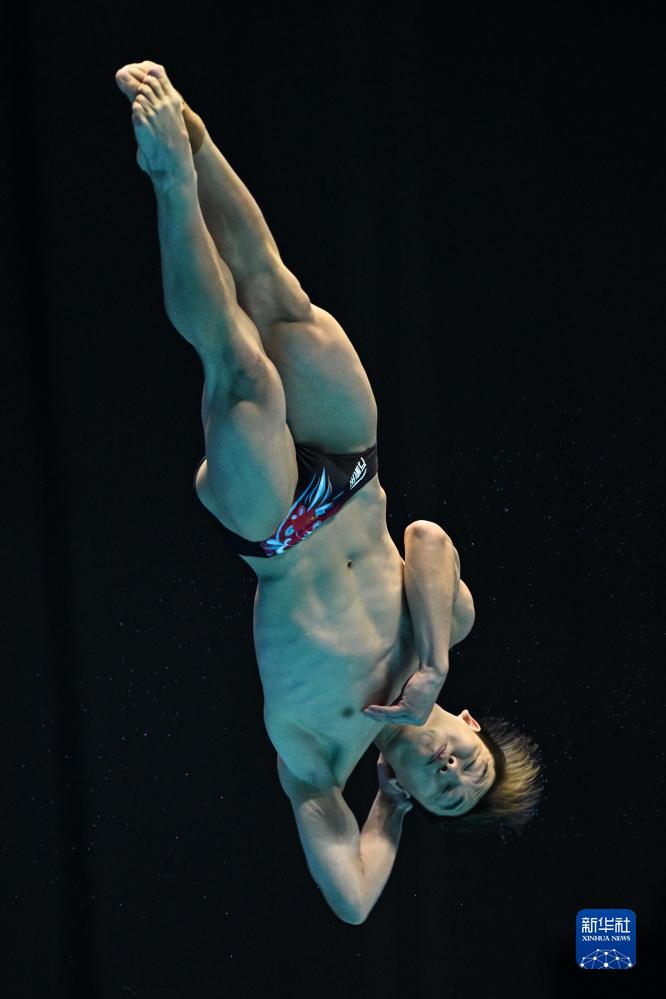 7月18日,中國選手鄭九源在三米板項目比賽中。
