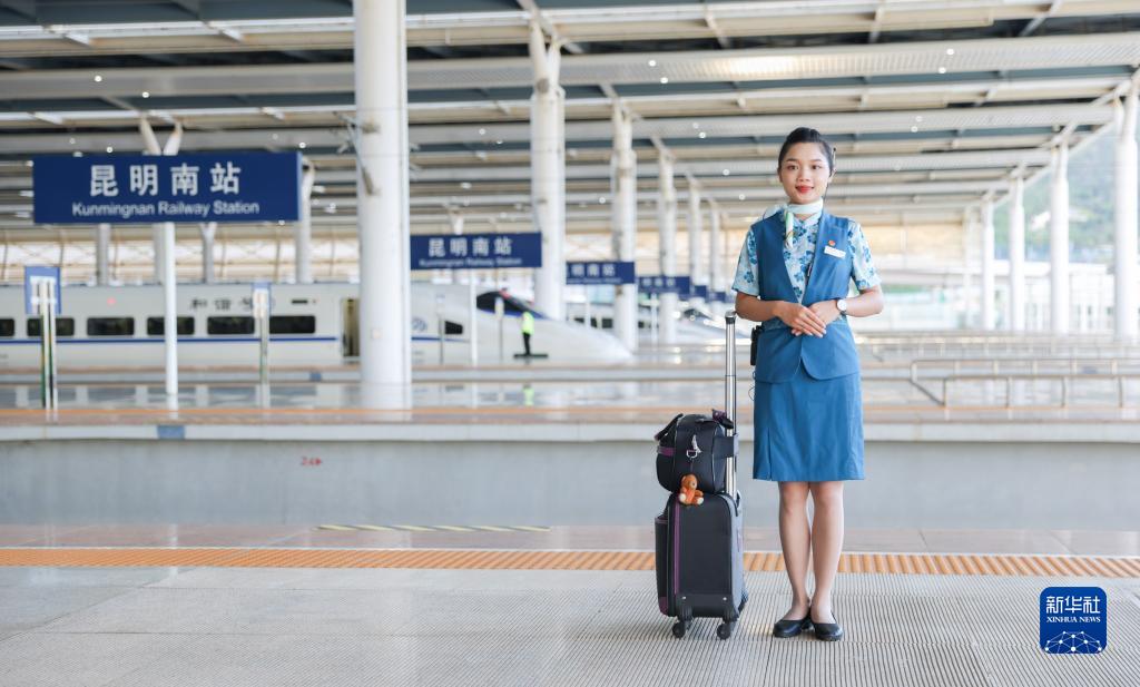 依波逢在昆明南站列車(chē)站臺(7月16日攝)。