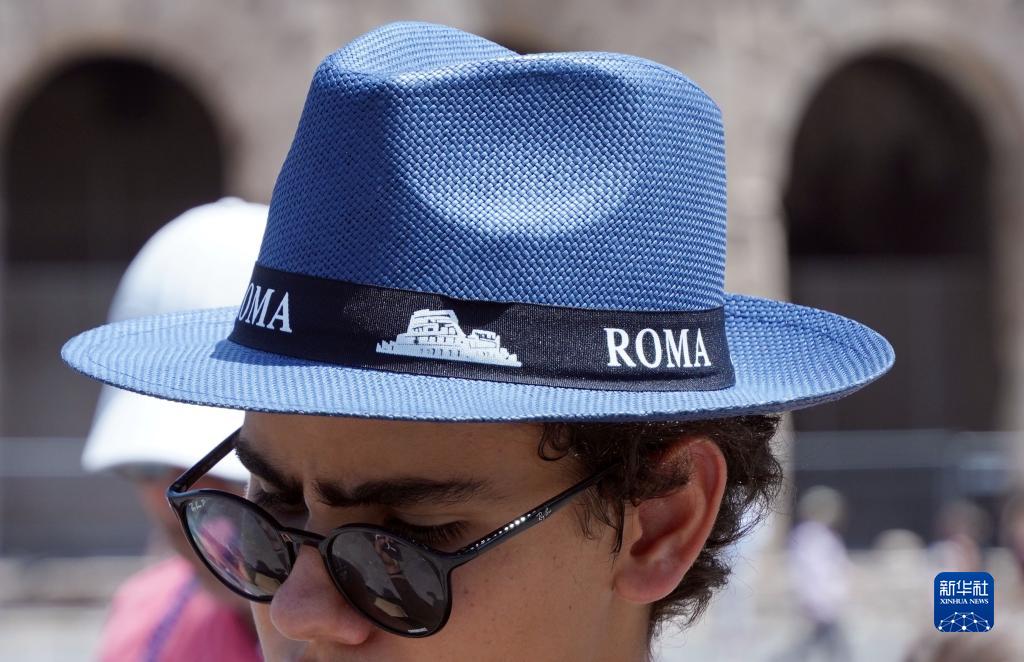 7月18日,一名戴遮陽(yáng)帽的游客在意大利羅馬游覽。