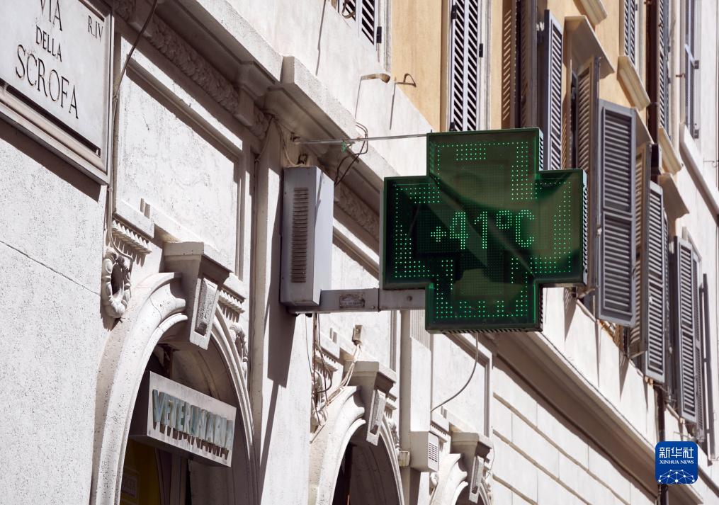 7月18日,意大利羅馬一家藥店的溫度計顯示實(shí)時(shí)溫度為41攝氏度。