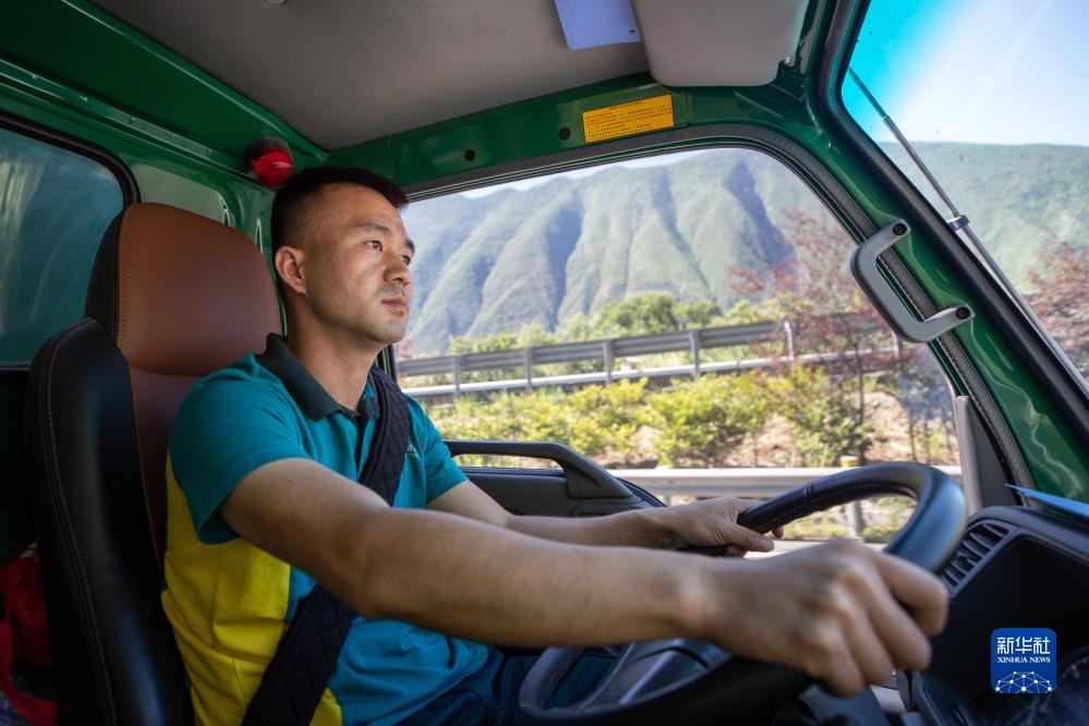 6月30日,在重慶市巫山縣,中國郵政重慶巫山縣分公司的工作人員駕駛載著(zhù)巫山脆李的物流車(chē)行駛在高速公路上。