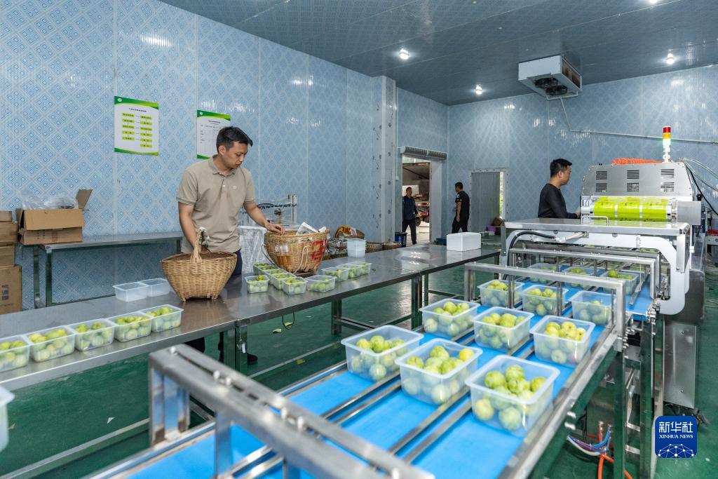 6月28日,在重慶市巫山縣曲尺鄉柑園村的脆李分揀中心,工作人員在打包巫山脆李。