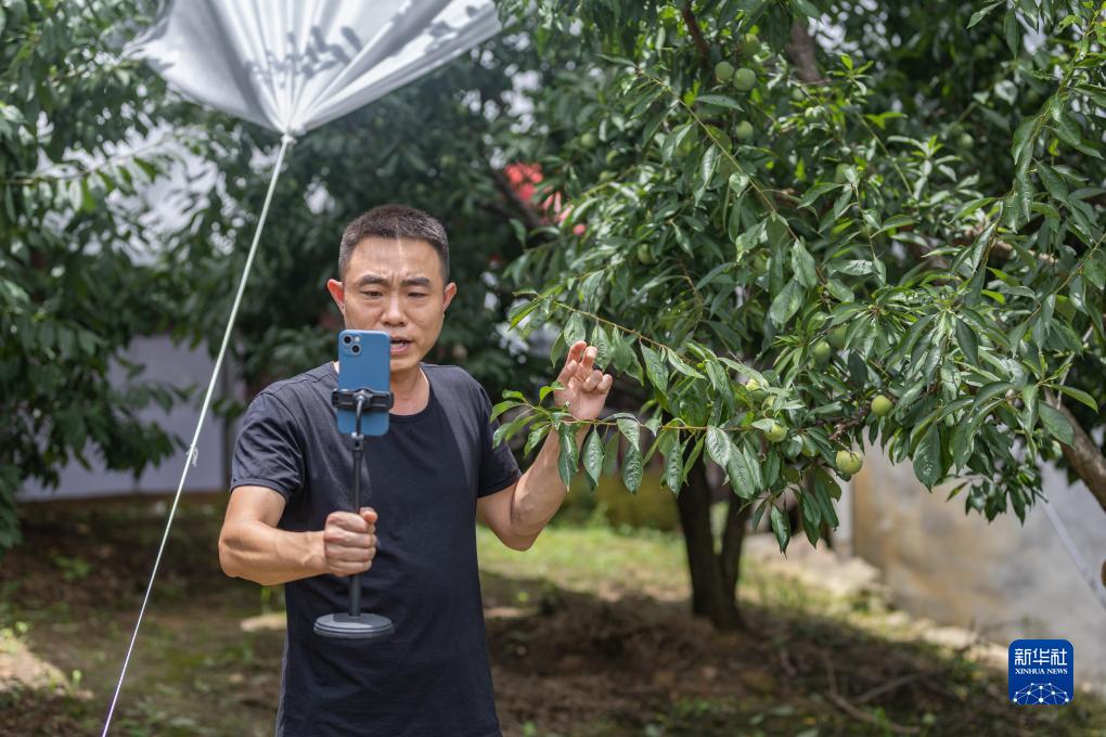6月30日,在重慶市巫山縣曲尺鄉柑園村,一名主播通過(guò)網(wǎng)絡(luò )直播售賣(mài)巫山脆李。