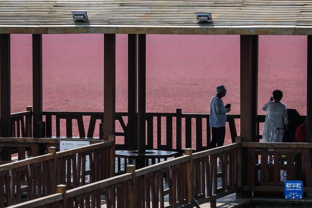 7月19日,游客在紅海灘國家風(fēng)景廊道景區內游玩。