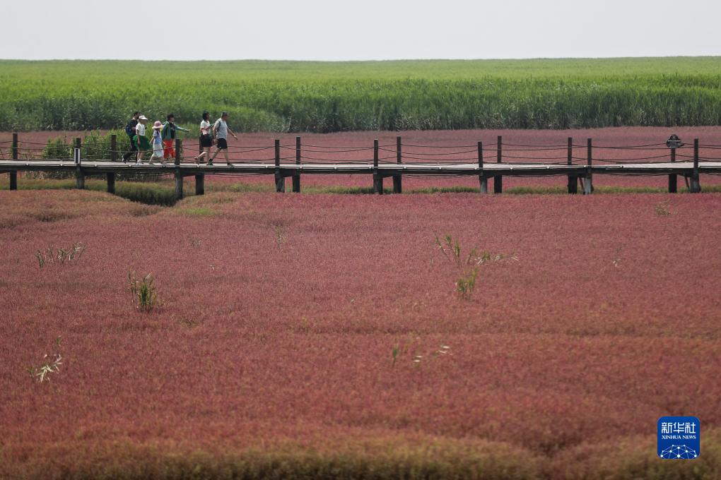 7月19日,游客在紅海灘國家風(fēng)景廊道景區內游玩。