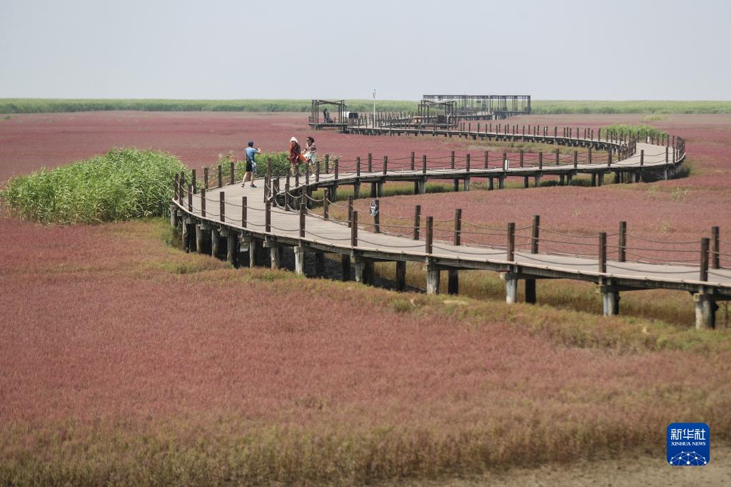 7月19日,游客在紅海灘國家風(fēng)景廊道景區內游玩。