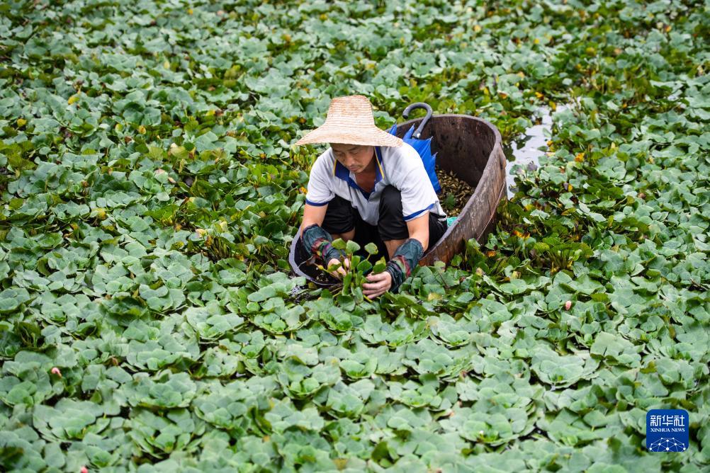 盛夏時(shí)節,位于洞庭湖腹地的湖南省益陽(yáng)市南縣種植的菱角、芡實(shí)、蓮蓬、藕根等多種水上作物進(jìn)入成熟期,為保證產(chǎn)品新鮮,當地農戶(hù)每天上午在塘內集中采收后第一時(shí)間送至市場(chǎng)。目前,南縣的多個(gè)鄉鎮均有菱角、芡實(shí)、蓮蓬、藕根的連片種植點(diǎn),總體面積達2萬(wàn)余畝。