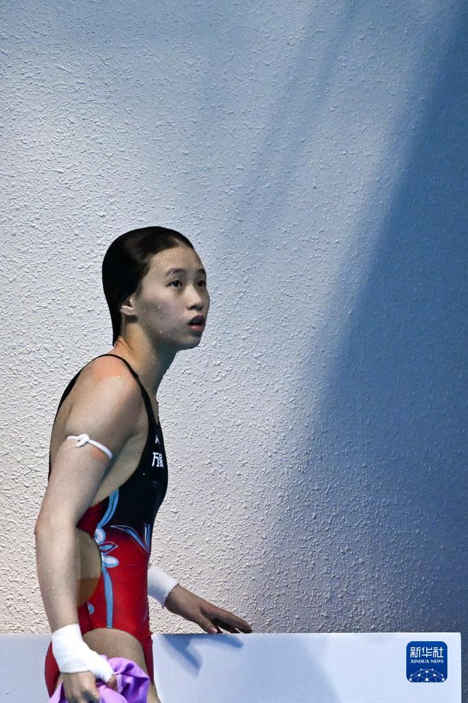 7月19日,陳芋汐在比賽后等待成績(jì)。