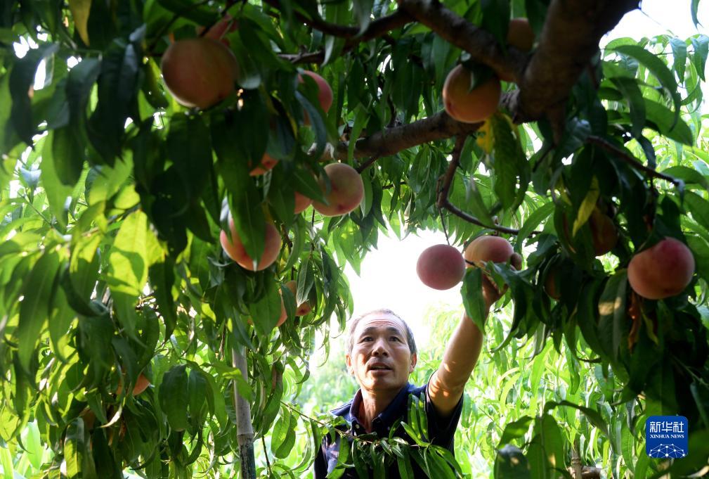 7月19日,河北省樂(lè )亭縣中堡鎮井兒坨村的果農在果園采摘鮮桃。