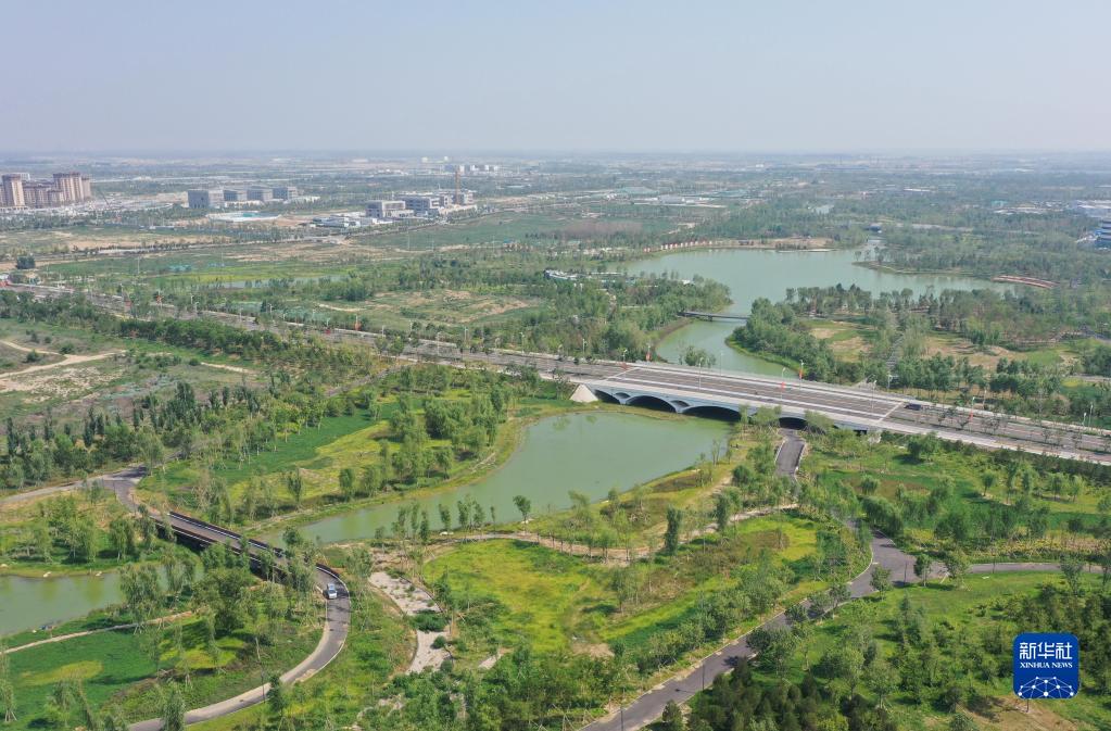 河北雄安新區啟動(dòng)區中央綠谷及東部溪谷生態(tài)廊道一角(7月18日攝,無(wú)人機照片)。