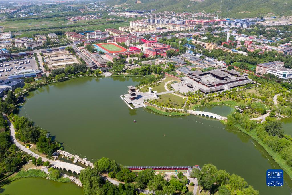 晉祠風(fēng)景(7月4日攝,無(wú)人機照片)。