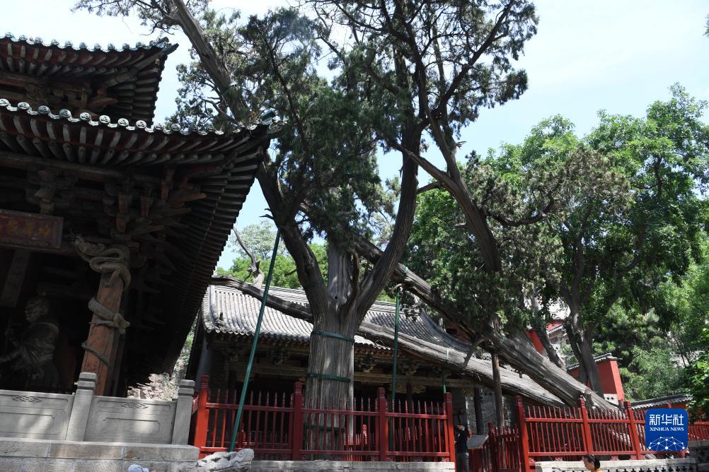晉祠圣母殿旁樹(shù)齡3000多年的周柏(6月16日攝)。