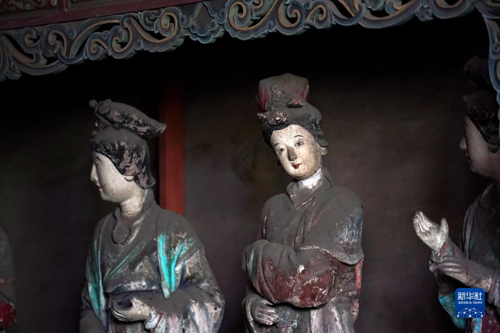 晉祠圣母殿內的宋代塑像(7月4日攝)。