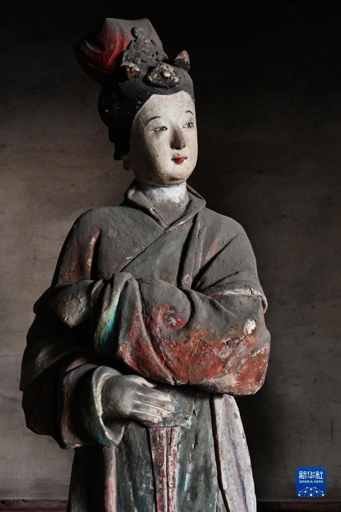 晉祠圣母殿內的宋代塑像(3月22日攝)。