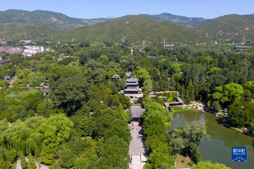 晉祠風(fēng)景(7月4日攝,無(wú)人機照片)。