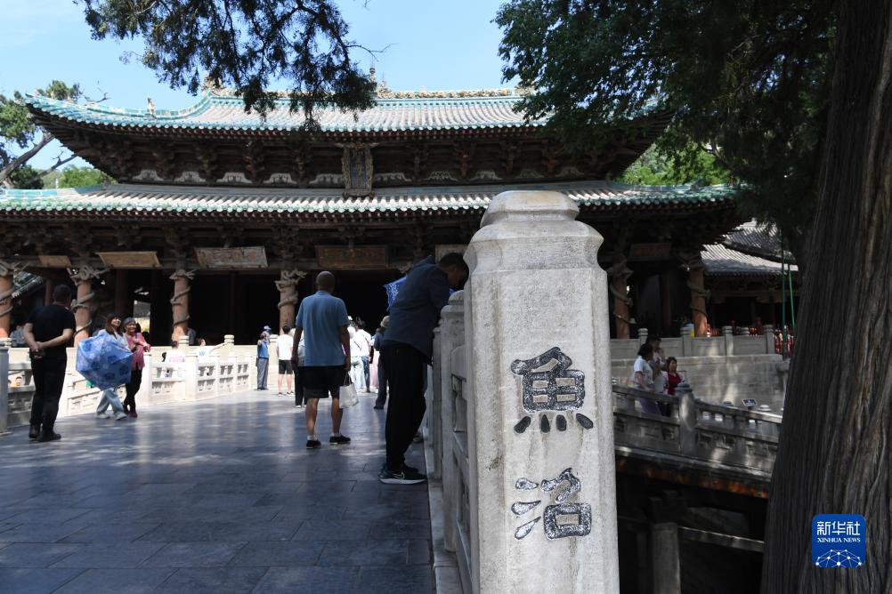 晉祠圣母殿和殿前的十字形古橋魚(yú)沼飛梁(6月16日攝)。