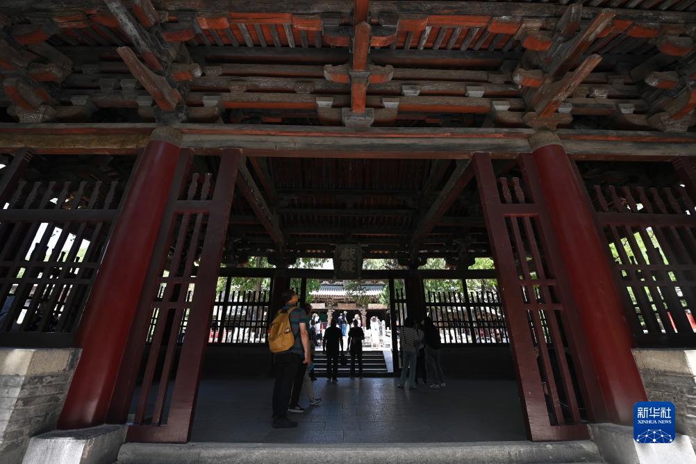 游客參觀(guān)晉祠獻殿(7月4日攝)。