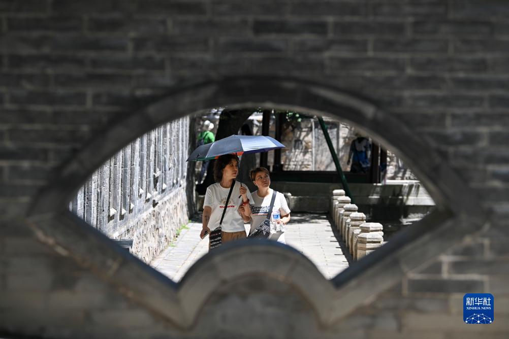 游客在晉祠游覽(7月4日攝)。
