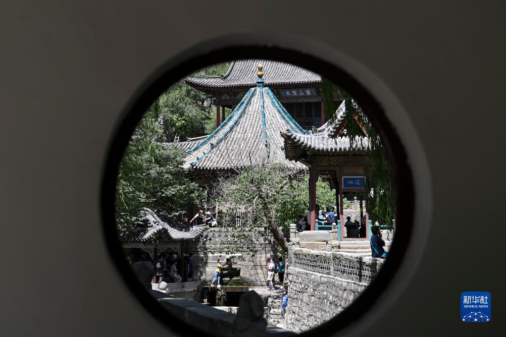 游客在晉祠難老泉旁的出水口處洗手(7月4日攝)。