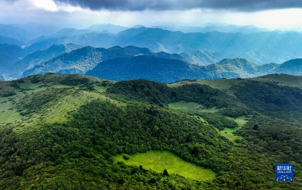 這是7月19日在陜西省漢中市留壩縣拍攝的紫柏山景區草甸景色(無(wú)人機照片)。