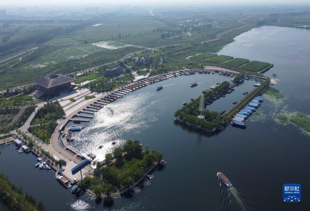這是7月19日拍攝的白洋淀旅游碼頭(無(wú)人機照片)。