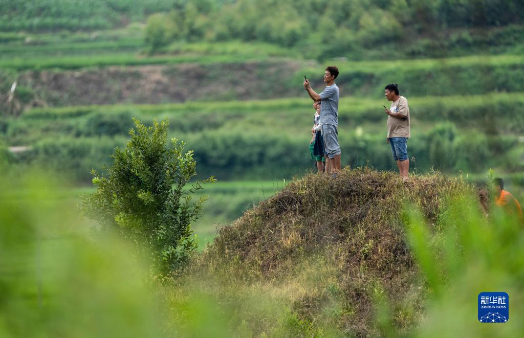 7月19日,人們在云南省普洱市江城縣的一處農田旁觀(guān)看亞洲象。