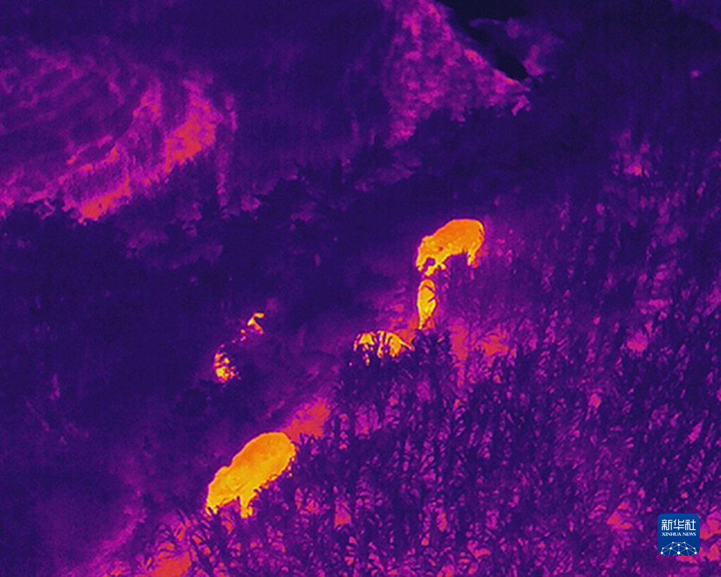 7月19日深夜,用無(wú)人機的熱成像攝像頭拍攝的亞洲象。