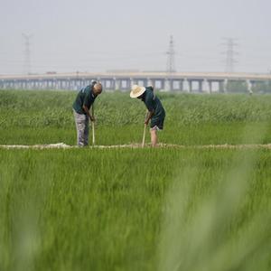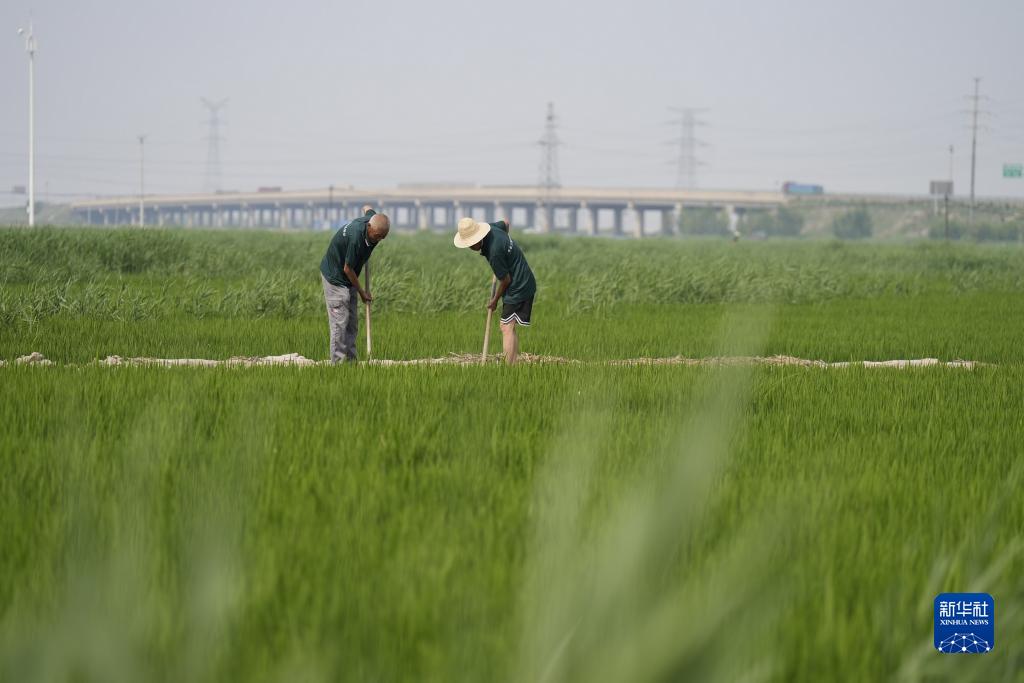 7月20日,河北省唐山市豐南區黑沿子鎮,工作人員在一處由鹽堿地改良而成的稻漁綜合種養試點(diǎn)區內整理田埂。